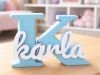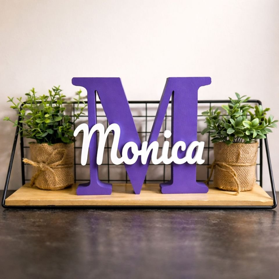 En fristående bokstav med barnets namn – en fin och personlig present till nyfödda, dop, babyshower eller som dekorativ inredning i barnrummet.