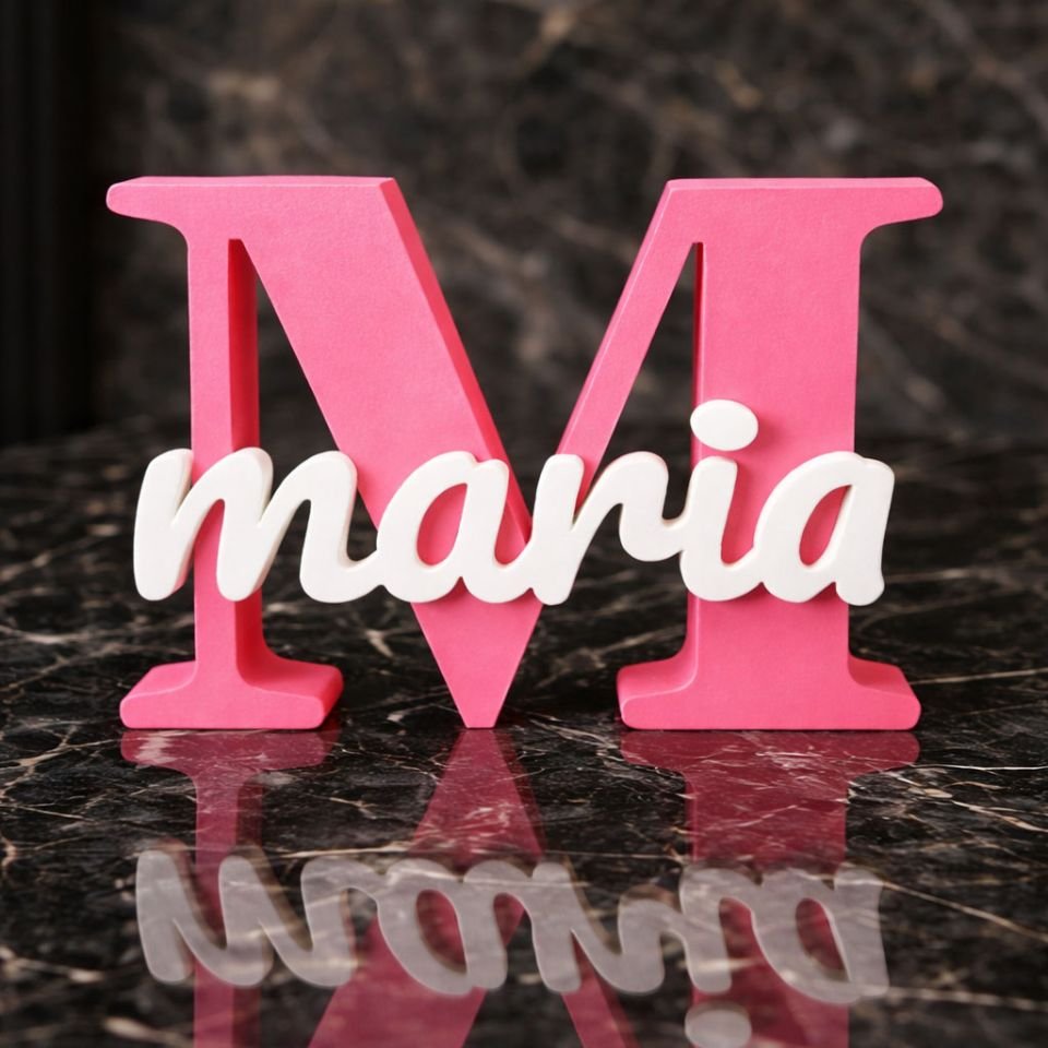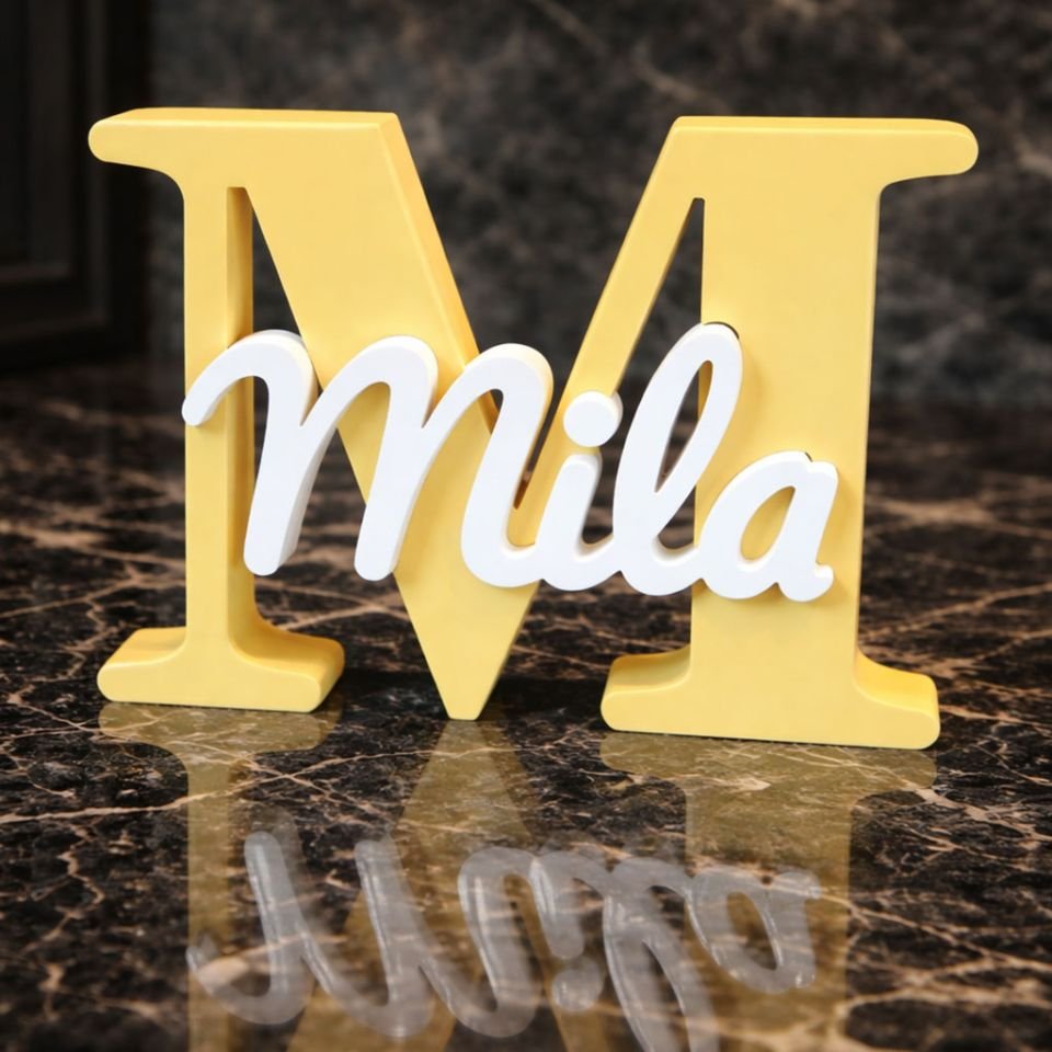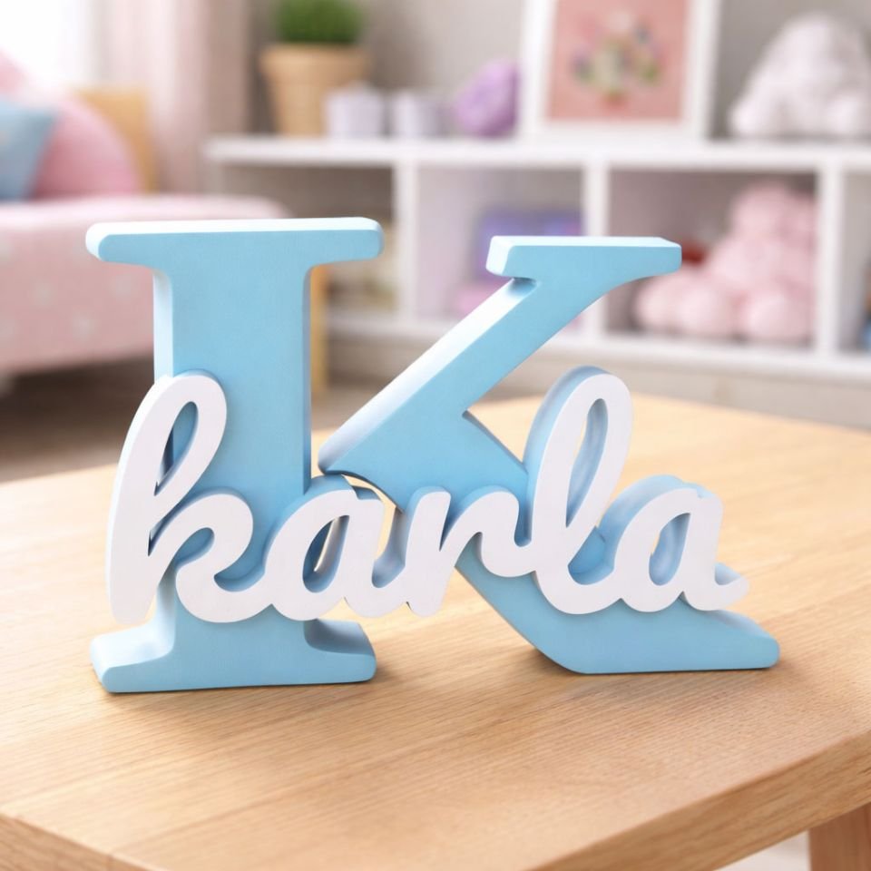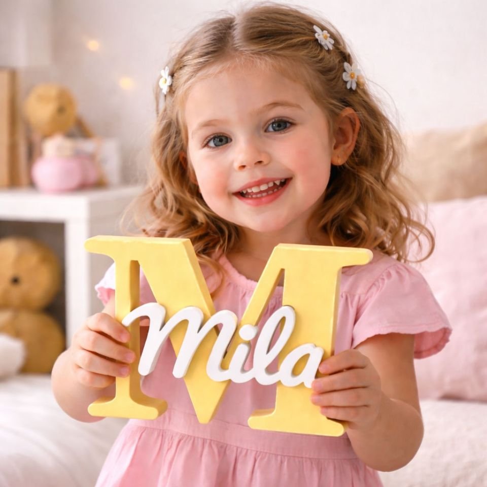 En personlig fristående bokstav med namn – perfekt som present till nyfödda, dop och barnrumsinredning.